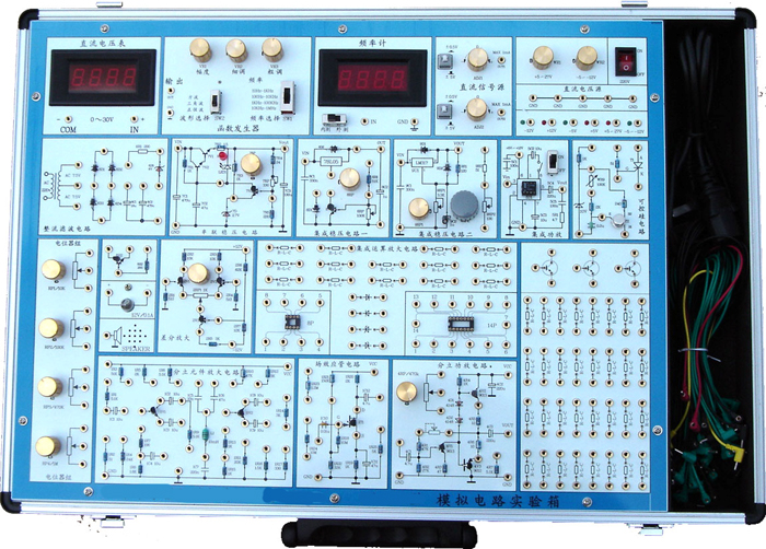 模擬電路實驗箱是根據最新的《高等工業學校電子技術基礎》教學大綱中確定的教學實驗要求為基礎,汲取了眾多專業教師的教學經驗,并綜合了眾多同類產品的優點而設計的。它函蓋了《模擬電子技術基礎》課程全部實驗內容,既為初學者提供了驗證性實驗電路,又為課程設計提供了擴展平臺。
