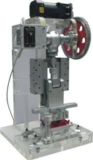 本機是對生產用機進行了微縮和改進,具有體種小、可隨意移動,適用于課堂教學的微型實驗臺。該產品以完成沖裁、拉伸、成型等動作。具有結構簡單,操作方便,且價格低廉的優點,無噪音無污染,并且可采用220V電壓,可在任何有電場所使用。填補了模具教學中無實驗用機的空白。本機可對透明拆裝模具進行課堂上模擬演示,能在實驗中看到模具的運動過程,提供設計人員對模具設計中的各機構產生更為實際的思維。
