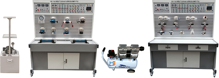液壓與氣壓傳動綜合實訓(xùn)裝置采用"二合一"結(jié)構(gòu),配備兩套實驗設(shè)備,一套為氣動與PLC實訓(xùn)平臺,另一套為液壓傳動與PLC實訓(xùn)平臺,且各自配有獨立的PLC電氣控制設(shè)備。