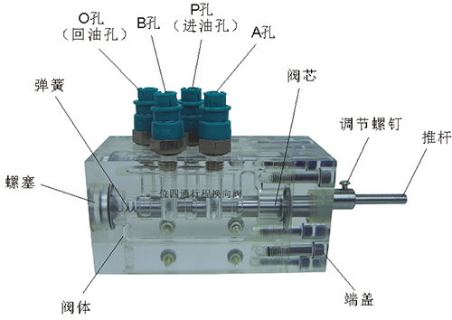 2、彈簧回位油缸的缸體,端蓋等均采用了進口透明有機玻璃材料精制而成,透明清晰,頂桿采用45#中碳鋼材料,并配合油接頭、密封圈、內六角螺絲等標準件裝配而成,通過它可明確地觀察到活塞、頂桿、油封、油孔、彈簧等結構及其運行過程,具有形象逼真,性能可靠等腰三角優點,它即可作為教學模型,也可作為液壓實驗元件進行實驗演示。