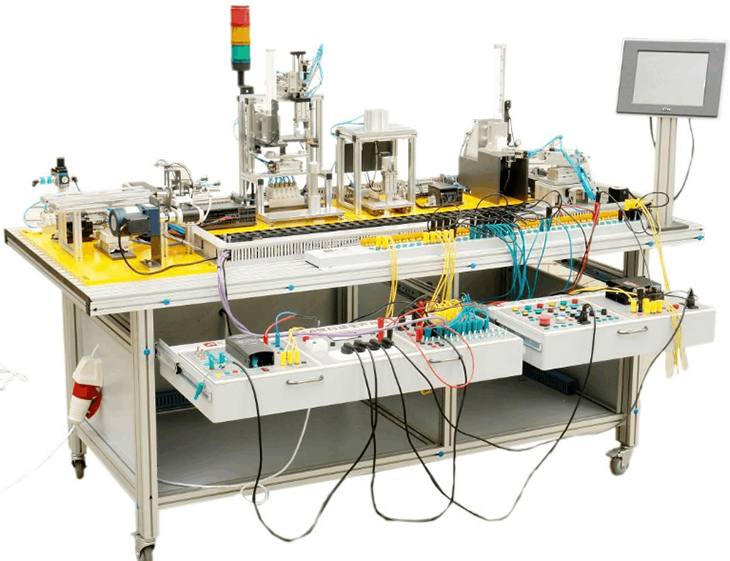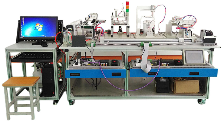 一體化自動生產線系統實訓裝置綜合應用了多種技術知識,有氣動控制技術、機械技術、傳感器技術、PLC控制技術、步進電動機位置控制和變頻技術等,模擬一個與實際生產情況十分接近的控制過程,可以提高學生的綜合技能。