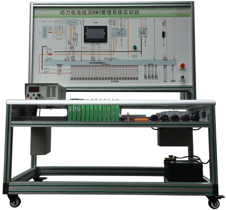 動力電池管理系統(tǒng)實訓臺選用新能源車輛磷酸鐵鋰 動力電池包,單體電池(3.2V20AH,共24串),帶CAN總線的一體機BMS電池管理系統(tǒng),有被動均衡功能;真實地呈現了磷酸鐵鋰動力電池包核心零部件之間的連接控制關系、安裝位置和運行參數,以及高壓系統(tǒng)安全注意事項,并培養(yǎng)學員對磷酸鐵鋰動力電池包(BMS)故障分析和處理能力。適用于了解與驗證電動汽車的動力電池參數進行實時監(jiān)控、故障診斷、SOC估算、短路保護、絕緣檢測、充放電控制、均衡等功能,并通過CAN總線的方式與帶CAN通訊的車載充電機進行信息交互,保障電動汽車高效、可靠、安全運行的BMS教學實訓實驗。